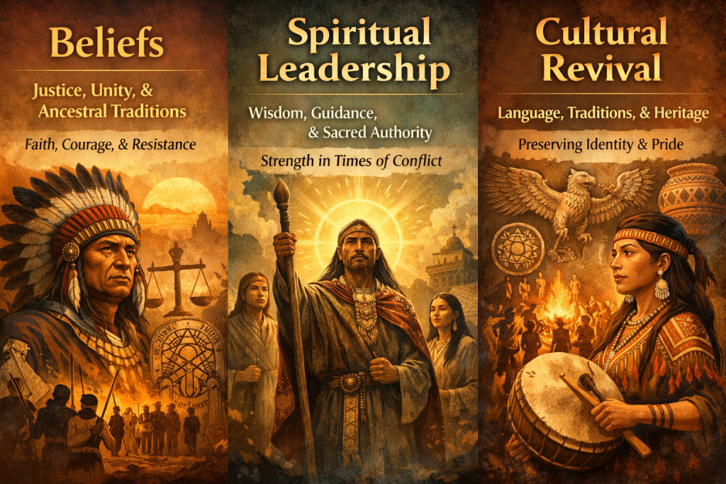 Rooted in indigenous values, beliefs emphasized justice, unity, and respect for ancestral traditions. Faith guided moral conduct and collective resistance.